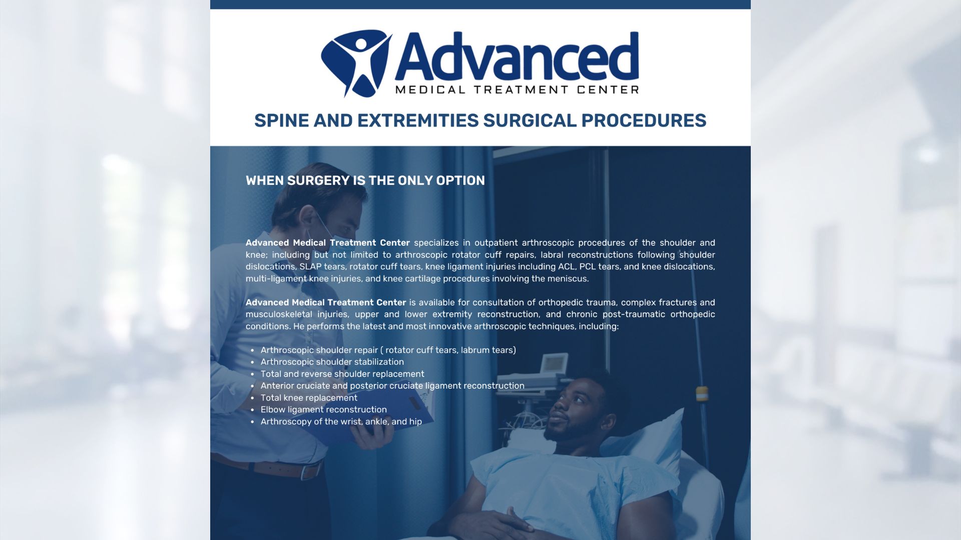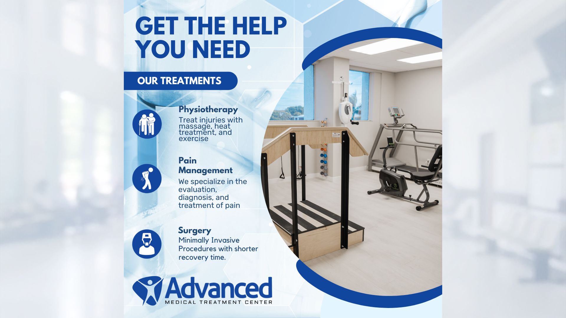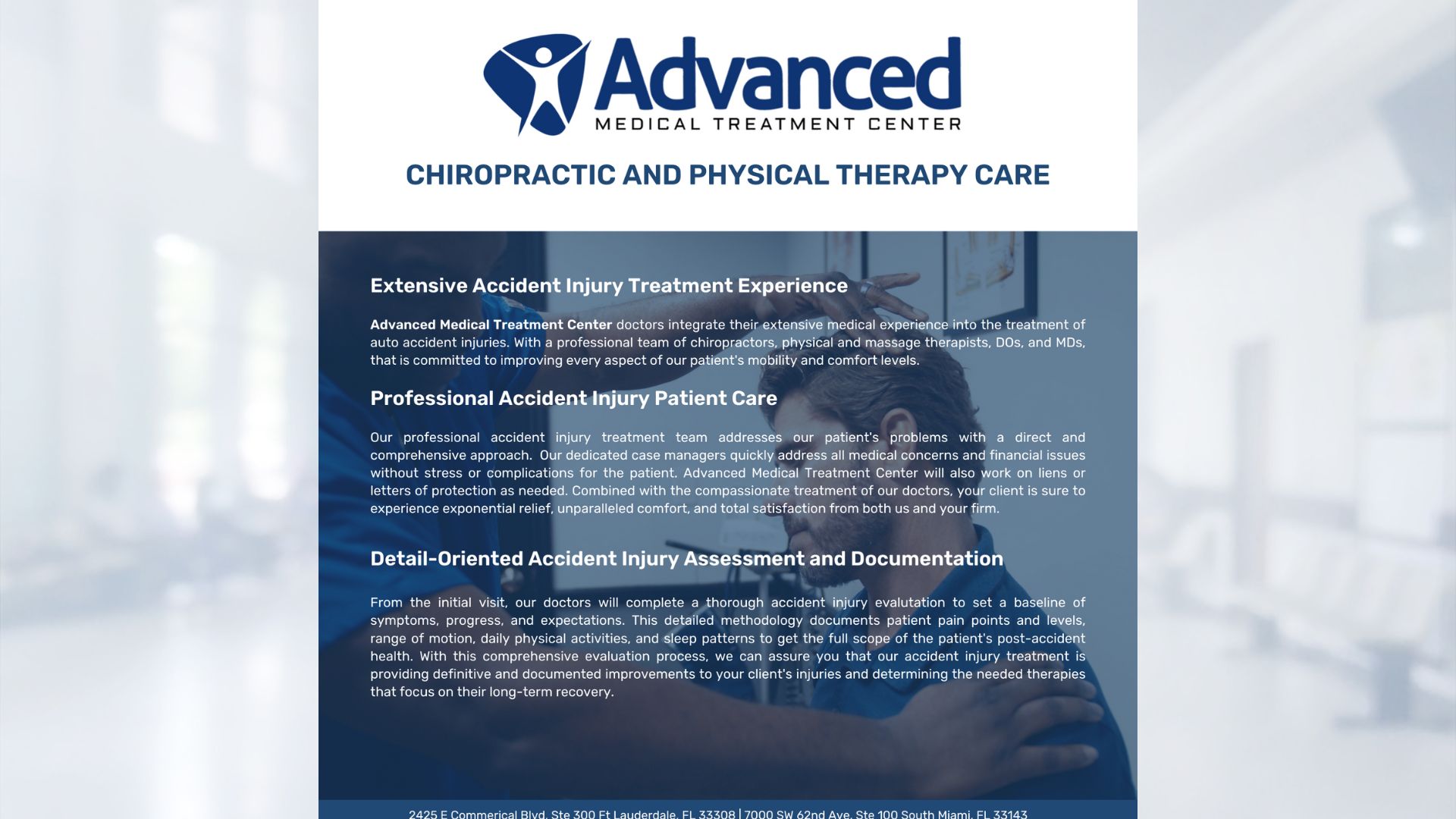 Advanced Medical Treatment Center is the top accident and injury rehabilitation center in Miami and Broward. Their team of injury doctors specializes in treating various injuries from auto accidents, work-related accidents, sports injuries, and slip and fall accidents. They offer services in pain management, surgery, and physiotherapy, providing personalized care plans for each patient to ensure the quickest recovery and best possible outcomes.