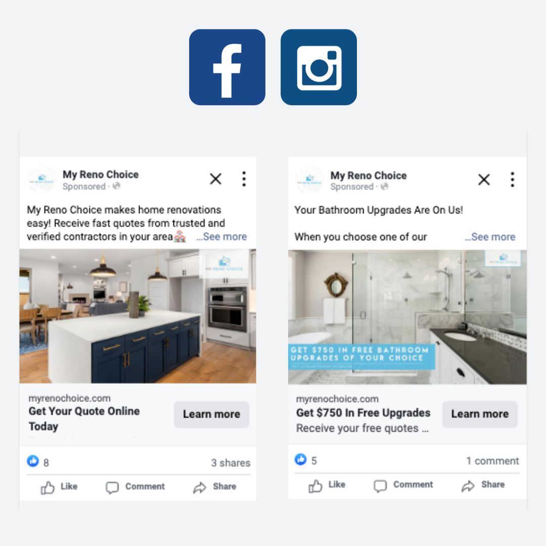 We successfully amplified MyRenoChoice’s online presence with a targeted digital advertising campaign on Facebook and Google AdWords. Our Facebook ads were strategically designed to capture the attention of a broad audience interested in home renovations. We utilized the platform’s advanced targeting features to reach potential customers, creating engaging and visually appealing ads that drove traffic directly to the MyRenoChoice website. This approach not only heightened brand awareness but was also effective in generating valuable leads.