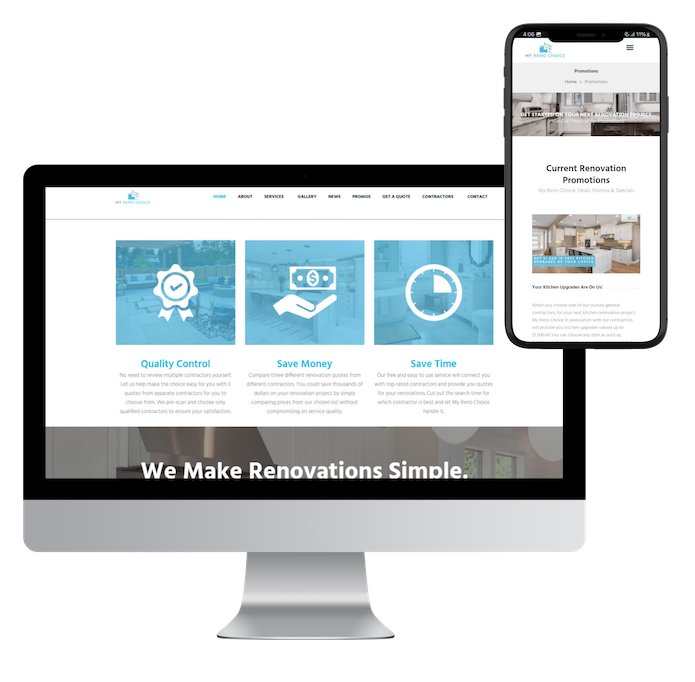 We are excited to present our web development project for MyRenoChoice, a premier home renovation company. Their new website is a showcase of our expertise in creating digital platforms that are both visually appealing and highly functional. Our objective was to design a website that not only reflects the high quality and creativity of MyRenoChoice’s renovation projects but also provides an intuitive and informative user experience.