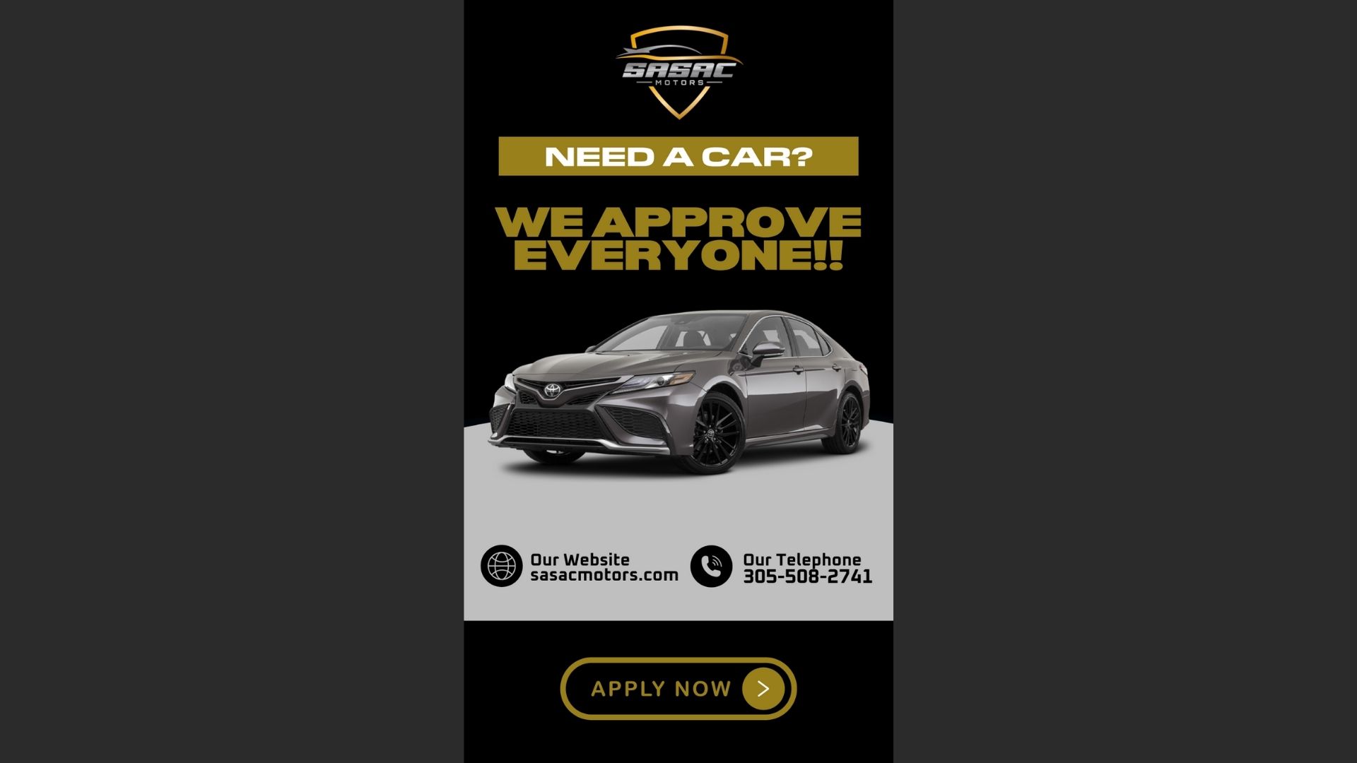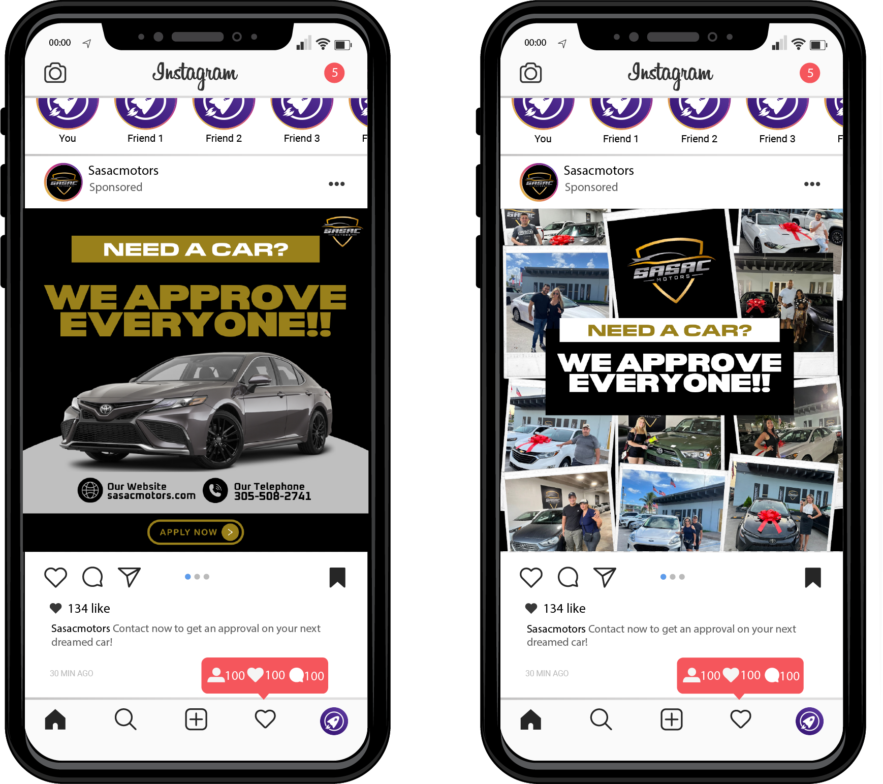 Meta Ads are a tool to amplify visibility and drive qualified leads toward Sasac Motors. Campaigns are focused on presenting the dealership’s value, promoting featured vehicles, and connecting with audiences ready to make a purchase decision. The approach is general, flexible, and optimized to maximize reach, awareness, and conversions.