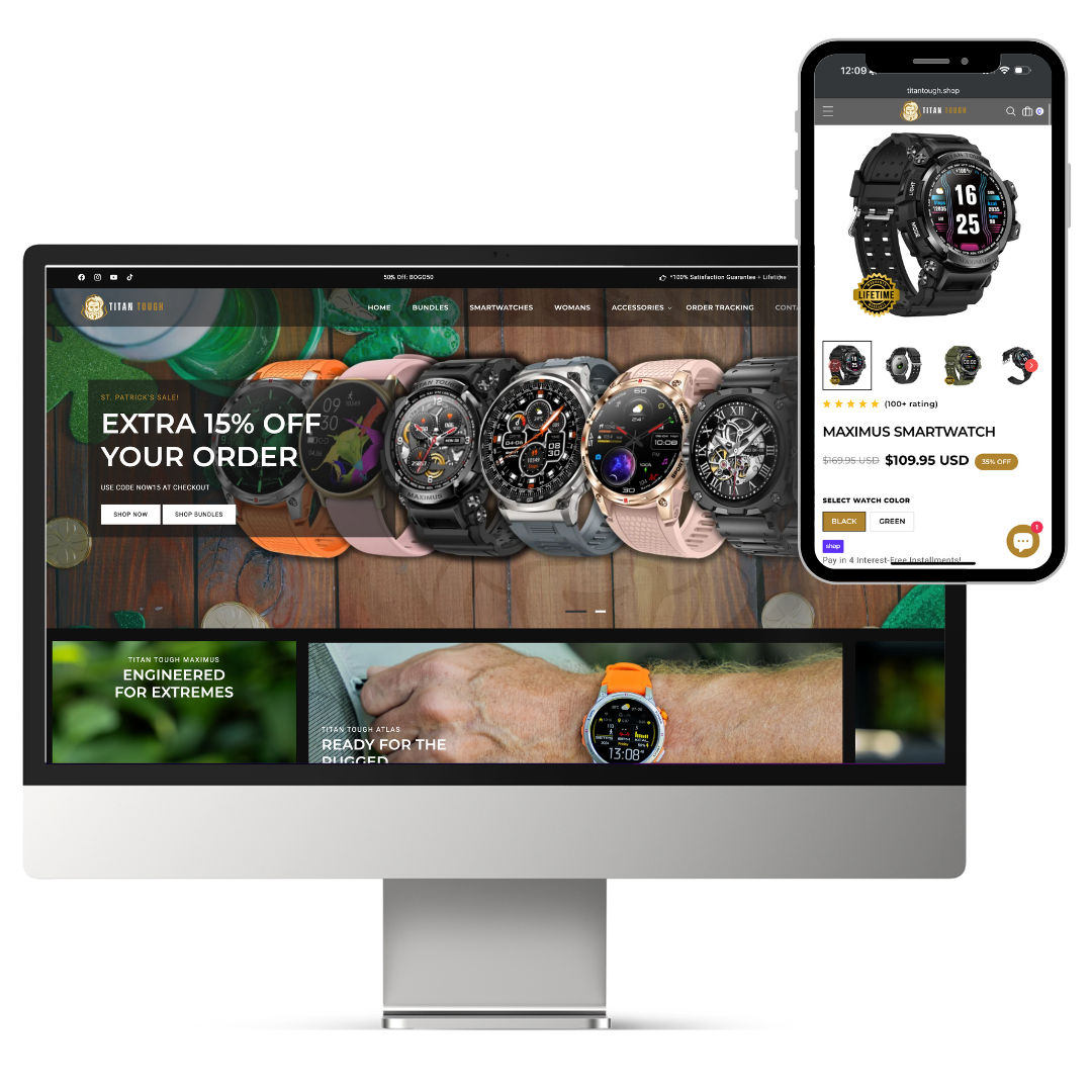 Boost Miami designed and developed a fully optimized e-commerce website for Titan Tough Watches. The site was built with a focus on seamless navigation, high-quality product presentation, and a smooth purchasing experience. From mobile-friendly design to conversion-optimized product pages, the website serves as the brand’s primary digital storefront.
